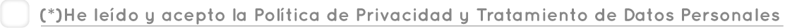 (*)Al dar clic en el recuadro autorizo a ABBOTT LABORATORIOS S.A., domiciliada en Av. República de Panamá 3591, Piso 7, San Isidro, Lima, (en adelante, ABBOTT), para que almacene y trate mis datos personales en su banco de datos denominado “Médicos Visitados”, por tiempo indeterminado o hasta que decida revocar esta autorización, con la finalidad de: (i) incluirme dentro del panel de profesionales de la salud y recibir visitas por parte de sus representantes médicos (ii) contactarme a través de mi correo electrónico/teléfono/dirección física con fines educativos, comerciales y promocionales (iii) usar mi información para estudios de mercado, análisis estadísticos internos, mejora de servicio, nivel de satisfacción, estudio de demanda, entre otras vinculadas a las actividades de Abbott (iv) invitarme a congresos, simposios y en general, cualquier actividad de educación médica continua. Para cumplir con estas finalidades ABBOTT se apoyará en la empresa, 4P Asesores, con domicilio en Calle San Martin 156, oficina 201, distrito de Miraflores, encargada de la recopilación de los datos y en la empresa, BBDO Youpanqui, con domicilio en Av. Salaverry 2991, distrito de San Isidro, que brinda servicios de CRM. Asimismo, he sido informado que mis datos serán encargados para su tratamiento por la agencia BenditaES, ubicada en Colombia y almacenados en Salesforce Marketing Cloud.com, cuyos servidores se encuentran en Estados Unidos. Cualquier variación de los encargados de datos personales será comunicada a su correo electrónico. Esta autorización es facultativa, sin su autorización de datos personales ninguna de las finalidades arriba indicadas podrá realizarse. ABBOTT me ha informado que podré ejercer los derechos previstos en la Ley de Protección de Datos Personales dirigiendo una solicitud al correo electrónico: claudia.torres1@Abbott.com